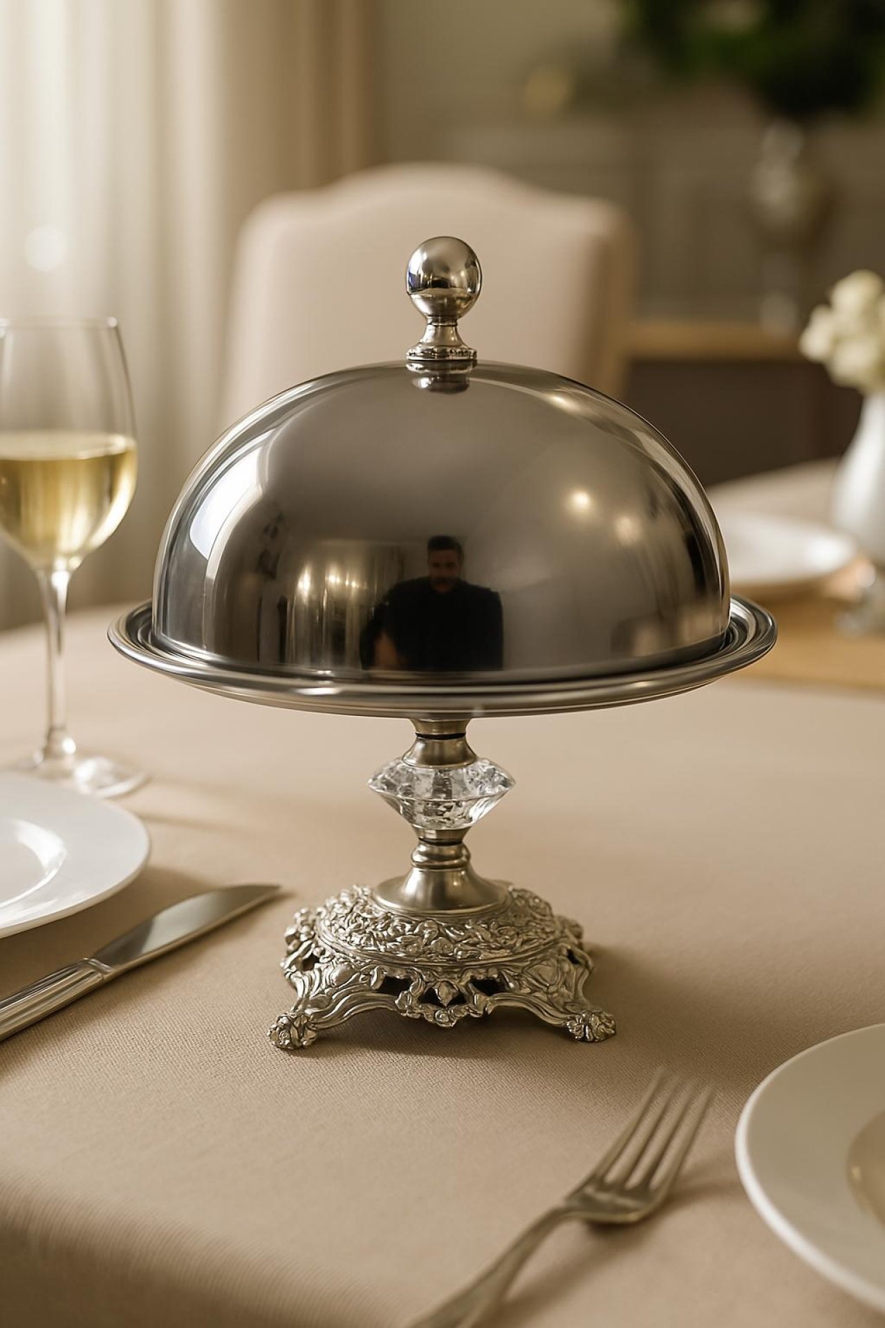 Ayaklı Çelik Kapaklı Kek Kurabiye Tatlı Servis Standı